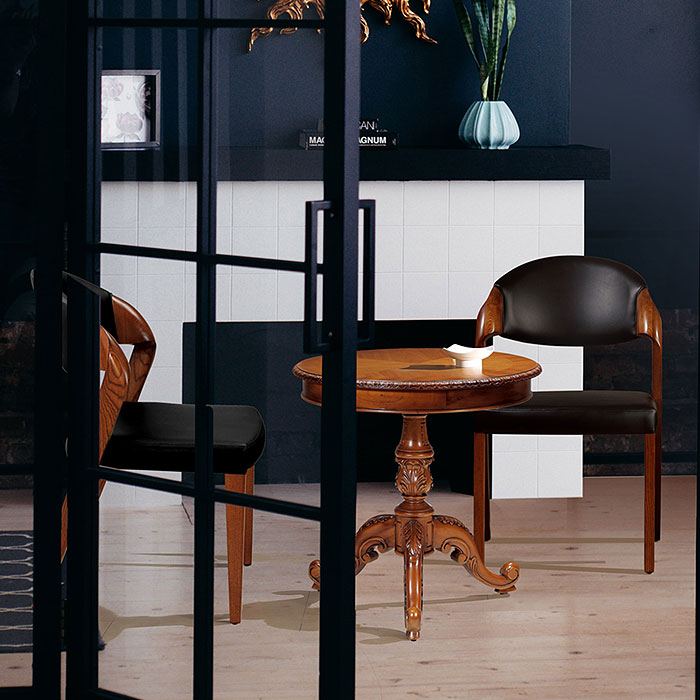 유리&가죽원형테이블