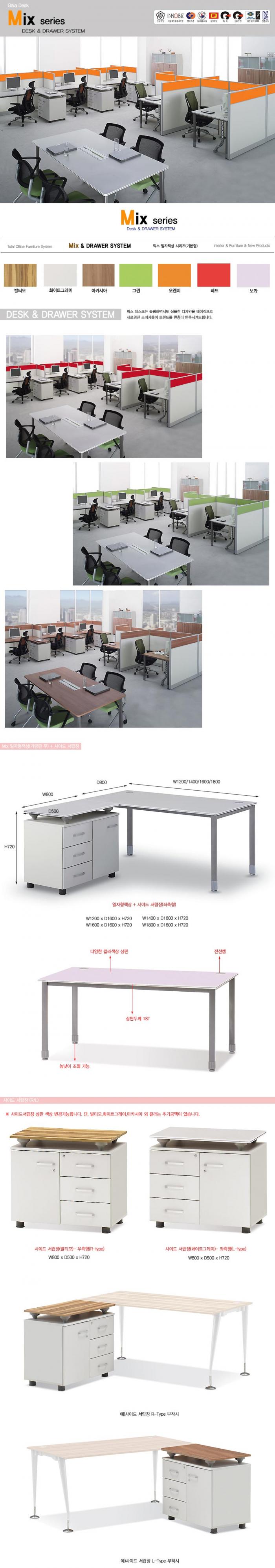 일자책상+사이드서랍
